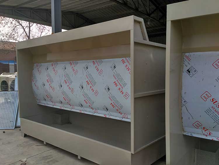 帶噴淋功能的水簾柜,這是在普通水簾柜的后面,加了一層噴淋及一層隔板。從而提高漆霧處理效率。