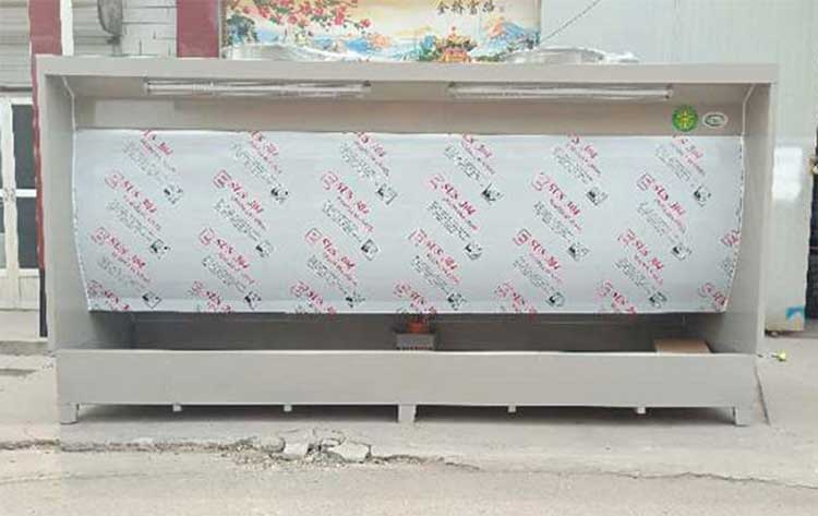 3.2、二是漆霧捕捉系統:采用外水幕厚度0.6mm的201不銹鋼,兩個水槽,兩層內擋板組成的2級水簾漆霧捕捉系統,捕捉漆霧中的顆粒狀涂料成分。水幕形成的水膜能吸附空氣中顆粒狀固體雜質,2級水幕對進入內風道的空氣進行除塵。內風道內,由于氣流轉向形成渦流,