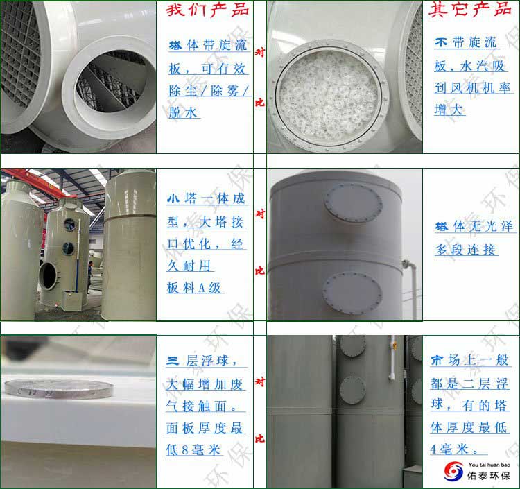 1、本公司流水線生產(chǎn)噴淋塔,產(chǎn)品的用料及質(zhì)量有保證,本塔塔體為優(yōu)質(zhì)PP板整體纏繞的圓筒型塔體,整體高度4米以下噴淋塔無焊接,接縫。本廠噴淋塔強(qiáng)度高、無滲露隱患,結(jié)實(shí)耐用。