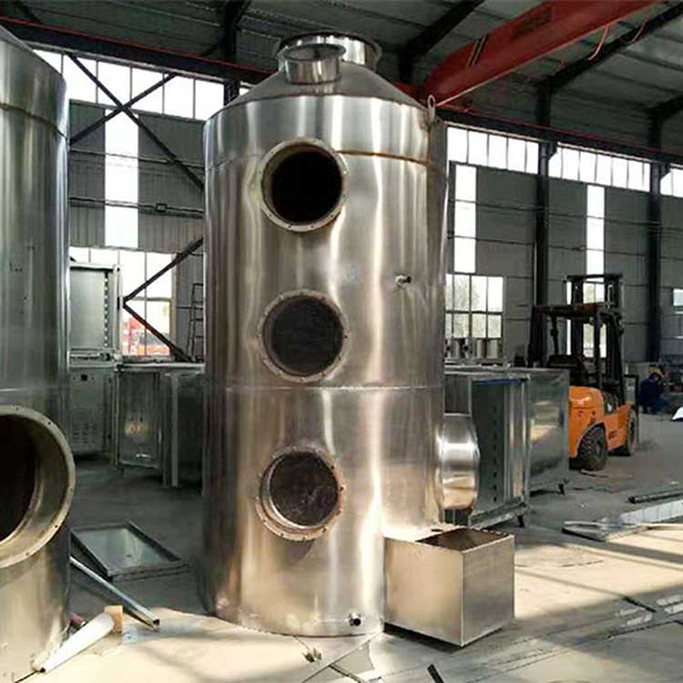 噴淋塔工作時(shí)氣、液逆流運(yùn)行,排出的廢氣從底部入口進(jìn)入塔體,經(jīng)過填料層和自下而上的水霧噴淋之后,***后通過風(fēng)機(jī)從頂部管道出口排出。噴淋塔里面循環(huán)水通過塔頂?shù)囊后w分布器,均勻噴入填料層,沿填料層表面向下流到塔底,由于上升廢氣和下降吸收劑在填料層的不斷接觸,上升氣流中的溶質(zhì)濃度越來越低,在塔頂達(dá)到吸收要求后排出塔外。相反,下降液中的介質(zhì)濃度越來越高,在塔底達(dá)到工藝條件要求,然后排出塔外。噴淋塔用于降低廢氣溫度,并處理灰塵和相對(duì)較大的顆粒。