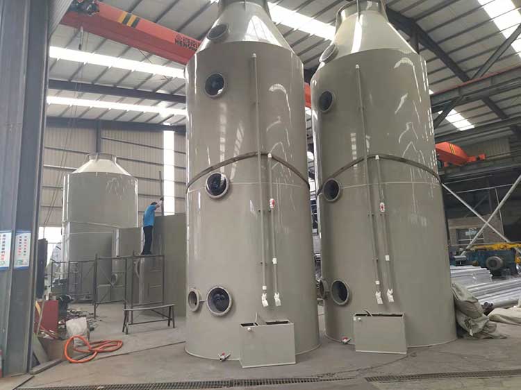 廢氣噴淋凈化塔工作時根據不同廢氣配不同藥劑,它采用濕法處理的方法來凈化多種有毒、有害廢氣。廢氣噴淋凈化塔它是吸取了泡沫塔、噴淋塔、填料塔等凈化技術的優點而設計的,有著良好的除塵、除廢氣效果。