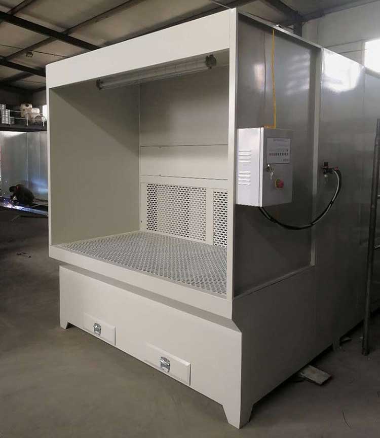 多工位打磨吸塵工作臺工作時,把工件放在工作臺面上打磨,在排風機的抽吸作用下,將工件上打磨出來的粉塵、灰塵等物吸入機內,打磨出來的粉塵不會在操作者的呼吸處停留,而隨抽風的氣流迅速抽進主機里,帶有粉塵的氣流通過百味窗透過濾芯排風過濾系統(tǒng)流向機外,粉塵顆粒經過濾芯過濾后掉下主機的集成箱里,干凈的空氣排出。還有一部分氣體通過回風道經過風口棉,再次過濾吹到工作臺面,從而達到循環(huán)的***佳效果。這樣大大改善了工作環(huán)境。
