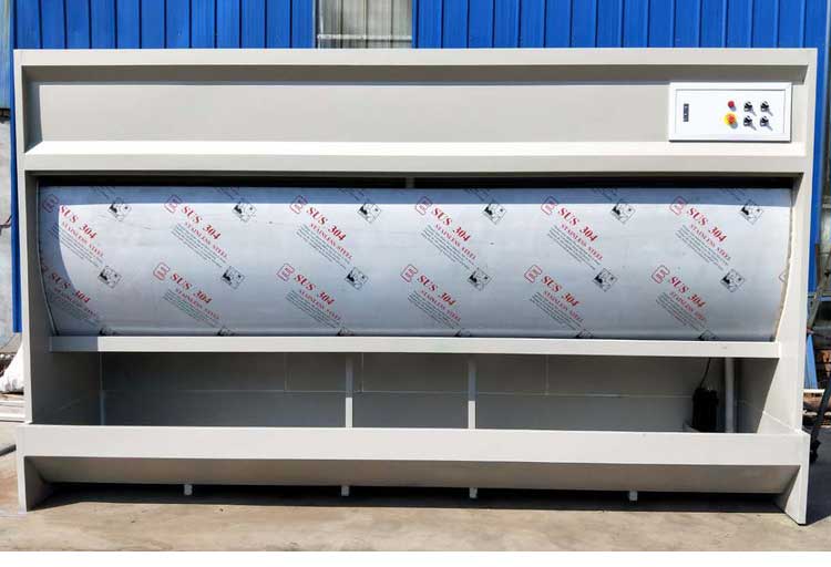 L3.0*W0.9*H2.1(m),面板1.0厚鍍鋅板噴塑,水池1.5mm鍍鋅板噴塑。水簾201不銹鋼。一層噴淋,一層浮球。電控箱一個。水泵一個,風機2臺。