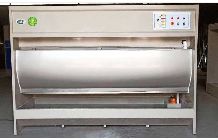 石材打磨吸塵柜由箱體,水泵,電控箱,1層塑料濕簾,1層紙質濕簾,及風機構成,具有吸附面大,風量小,處理粉塵能力強的優點。