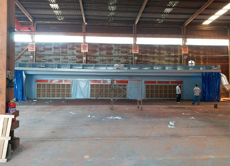 伸縮移動噴漆房的設計及制造符合中華人民共和國的現行相關要求,以確保產品品質。機械構造設計合理,制造精良,性能***,操縱靈敏、便利,安全可靠、可修理性好,各部分功能滿意需方要求且有足夠的余量;潤滑系統設計***,能保障各傳動部件的良好潤滑,且安全可靠、修理性好、換油便利、不滲漏。伸縮前室的行走安穩,穩定,無爬行斷走等現象.前室室體行走過程中,安裝有聲光報警裝置,伸縮移動室體構架采用鋼構造,外表噴涂防銹漆和面漆,鋼構間的鉸鏈能活泛活動.鋼構造構架之間采用阻燃性極高的PVC布封閉,在伸縮式噴漆間徹底展開后布料無褶皺現象,在縮回后鋼構架不會夾到布料造成布料破壞.所有焊接構件都牢固可靠。