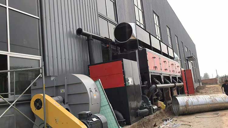 催化燃燒設備(RCO)是由二個以上活性箱吸附器組成,可同時進行吸附脫附操作,可獨立進行吸附操作,把大風量、低濃度的有機廢氣濃縮成小流量、高濃度的有機廢氣。濃縮后的高濃度氣體連接到蓄熱式催化燃燒設備進行氧化處理(高溫吹脫燃燒)即吸附材料活性炭的再生,恢復其吸附性,再生操作不可同時進行,同一時間只能單個吸附器進行脫附操作。該處理工藝可廣泛用于石油、化工、橡膠、油漆、涂裝、家具、家電、印刷等行業中產生的低濃度有機廢氣的凈化處理,可處理的有機物質種類包括苯類、酮類、醇類、醚類和烷烴類等。