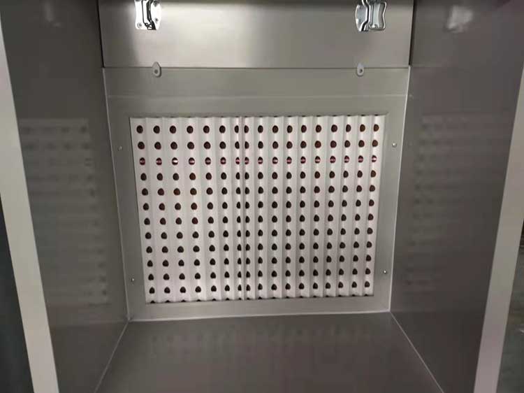 使用干式噴漆柜的噴漆室,因為其分離漆霧的過程中不使用水,純干式的方式分離漆霧,故稱為干式噴漆室。干式噴漆室按照分離漆霧的形式可以分為以下幾種類型:折流式漆霧捕集箱式干式噴漆室、石灰式干式噴漆室、靜電式干式噴漆室,漆霧氈式干式噴漆室,風(fēng)琴紙式。