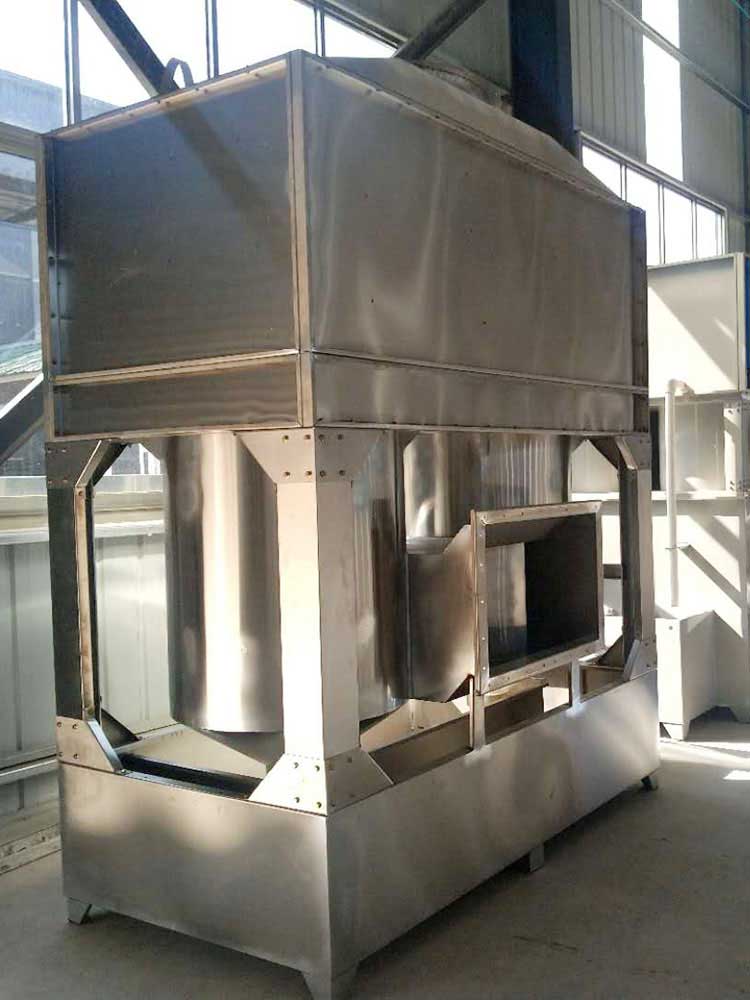 3、2萬風量方形旋流噴淋塔尺寸為L2.4*W1.3*H3米,有6個旋流筒。一個水泵,一般使用pp板或201不銹鋼制作。