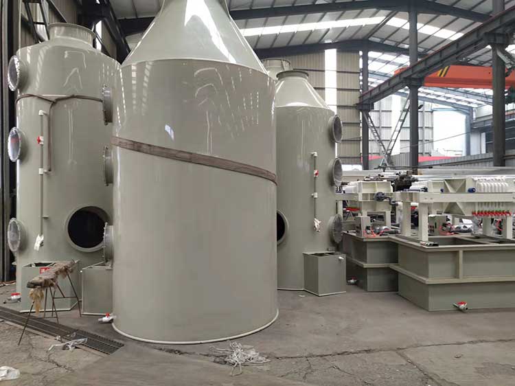1.5萬風(fēng)量pp噴淋塔塔規(guī)格為:ф1.8m*H4.0m*10mm。進、出風(fēng)口直徑均為600mm。循環(huán)水量每小時22立方。每小時處理廢氣量15000立方左右。凈化塔整體厚度為8mm PP板。塔體內(nèi)部有二層水噴淋裝置,三層浮球填充,帶水箱和2.2KW純銅芯普通循環(huán)水泵。