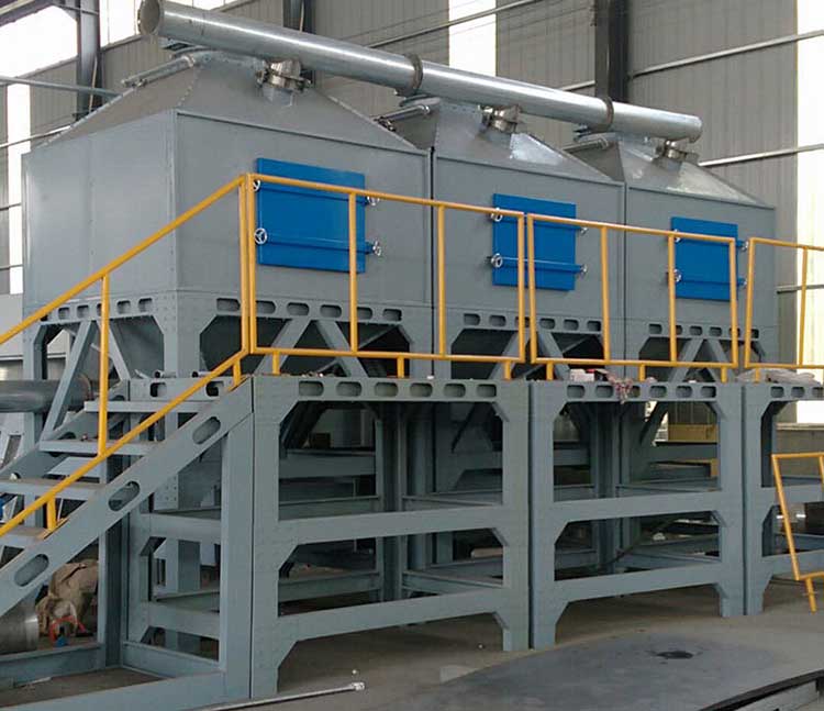 3.4、催化燃燒法凈化原理是待脫附廢氣在進入燃燒室前先預熱,再送至燃燒室,在燃燒室內達到所要求的反應溫度,氧化反應在催化反應器中進行,凈化后煙氣經熱交換器釋放出部分熱量,再由煙囪排入大氣。催化燃燒裝置適用于可燃氣體、蒸氣等有毒有害氣體的凈化,適用于幾乎所有工業生產的碳氫化合物或惡臭化合物的凈化。催化燃燒凈化法對于粉塵、液滴等有毒有害氣體來說,容易造成催化床堵塞,降低催化活性,降低凈化效率。